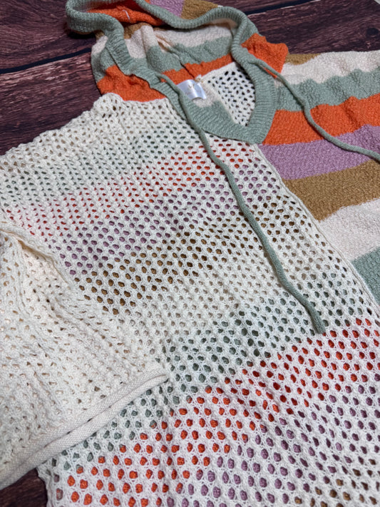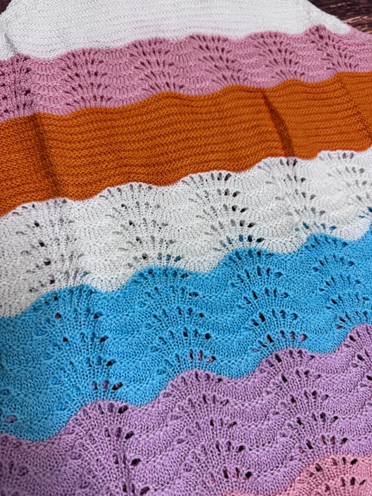 Multicolor Wavy Striped Print Textured Knit Sleeveless Sweater Top