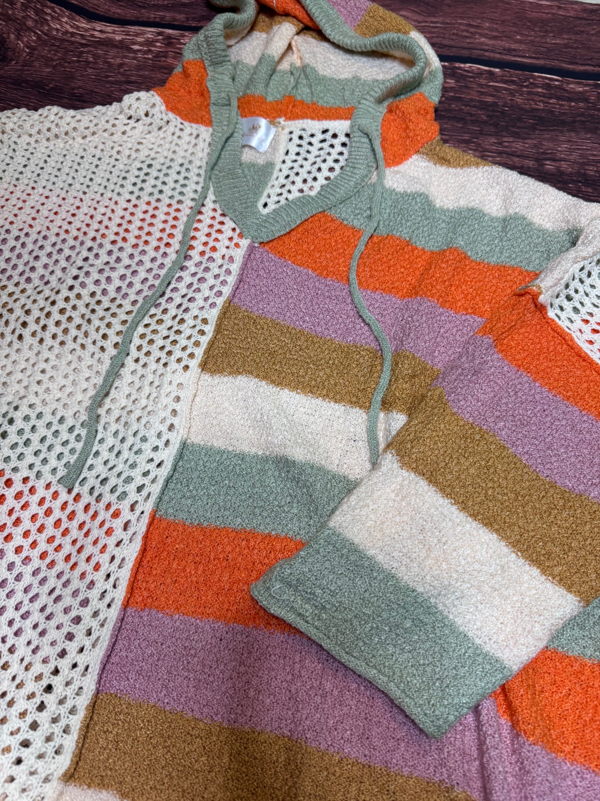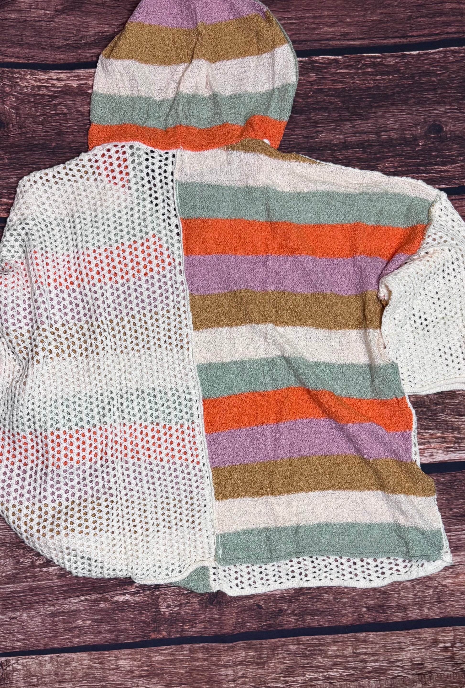 Fall in love with this women’s sweater for its eye-catching color block.. It features a relaxed fit style with color block and hollowed patchwork.. The v neck and hooded design makes it more faddish.