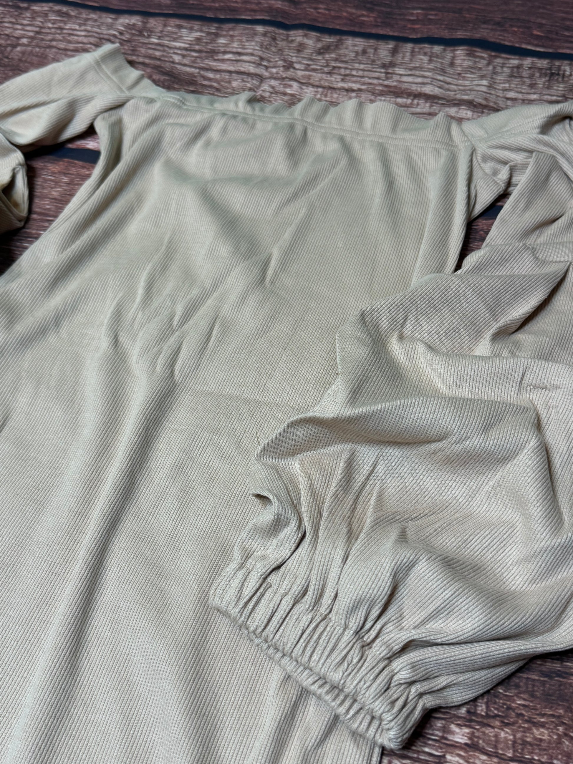 The off-shoulder neckline showcases your collarbones and shoulders. Crafted from a skin-friendly and comfortable rib knit fabric. The trendy balloon sleeves add a touch of volume and drama. It showcases your legs and adds a playful and stylish touch.